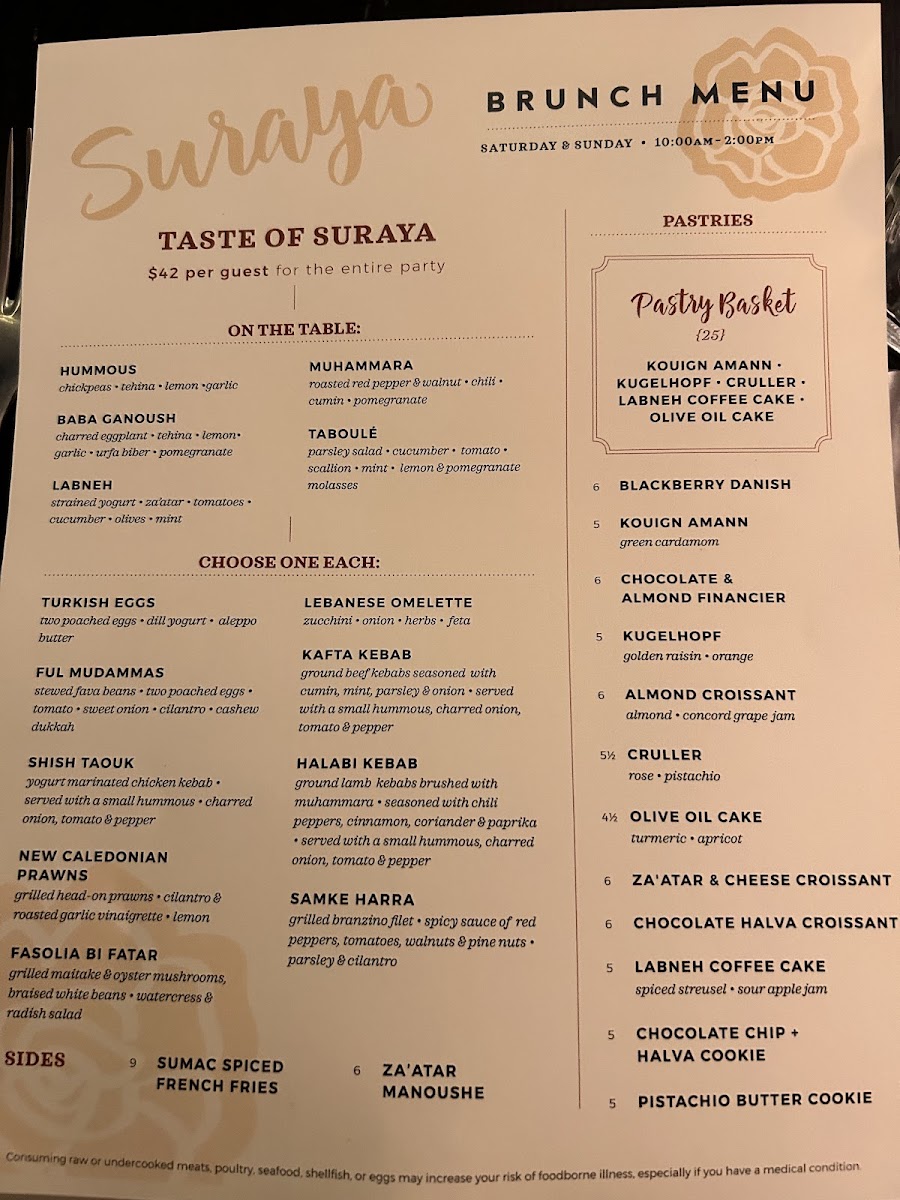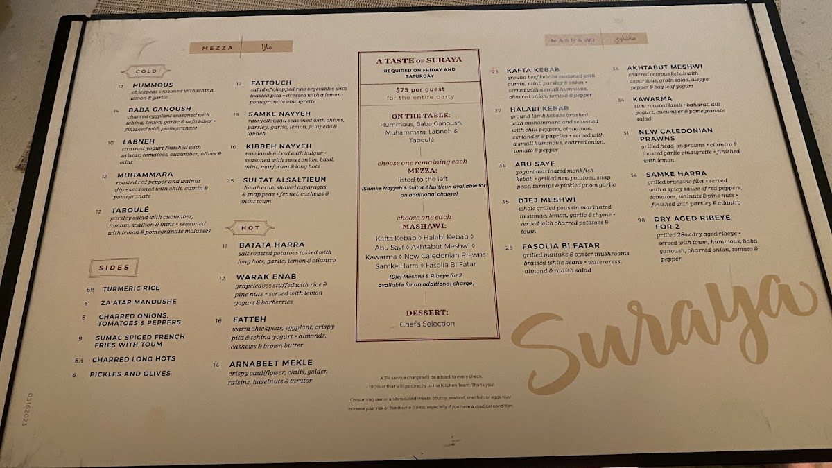 For those visiting on weekends, the "Taste a Suraya" pre-fixe menu is a fantastic way to experience a curated selection of dishes that reflect the best of what Suraya has to offer. Abby Calungcagin raved about the bountiful array of dips and expertly crafted appetizers, making it an ideal destination for those dining with friends and family.